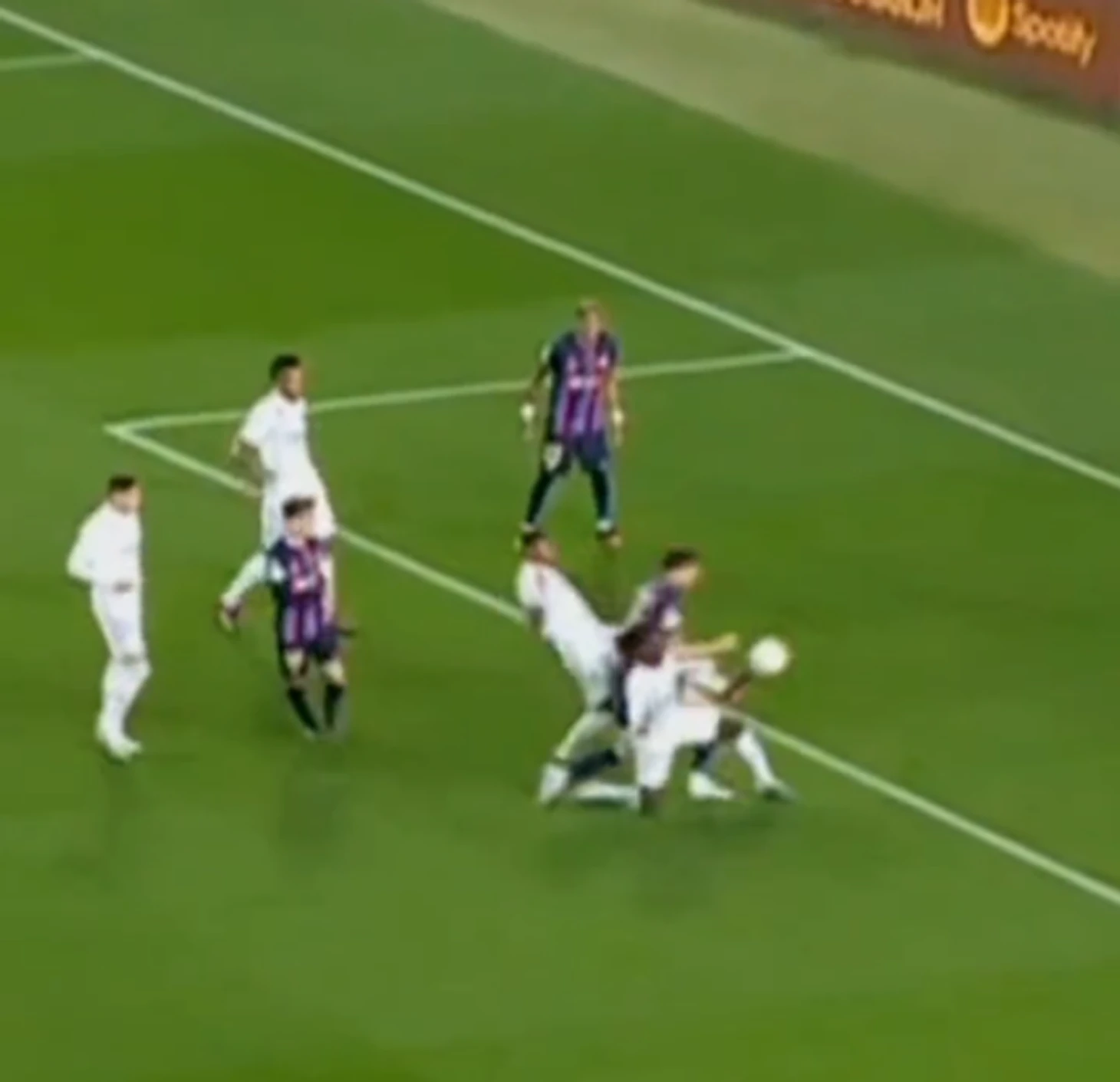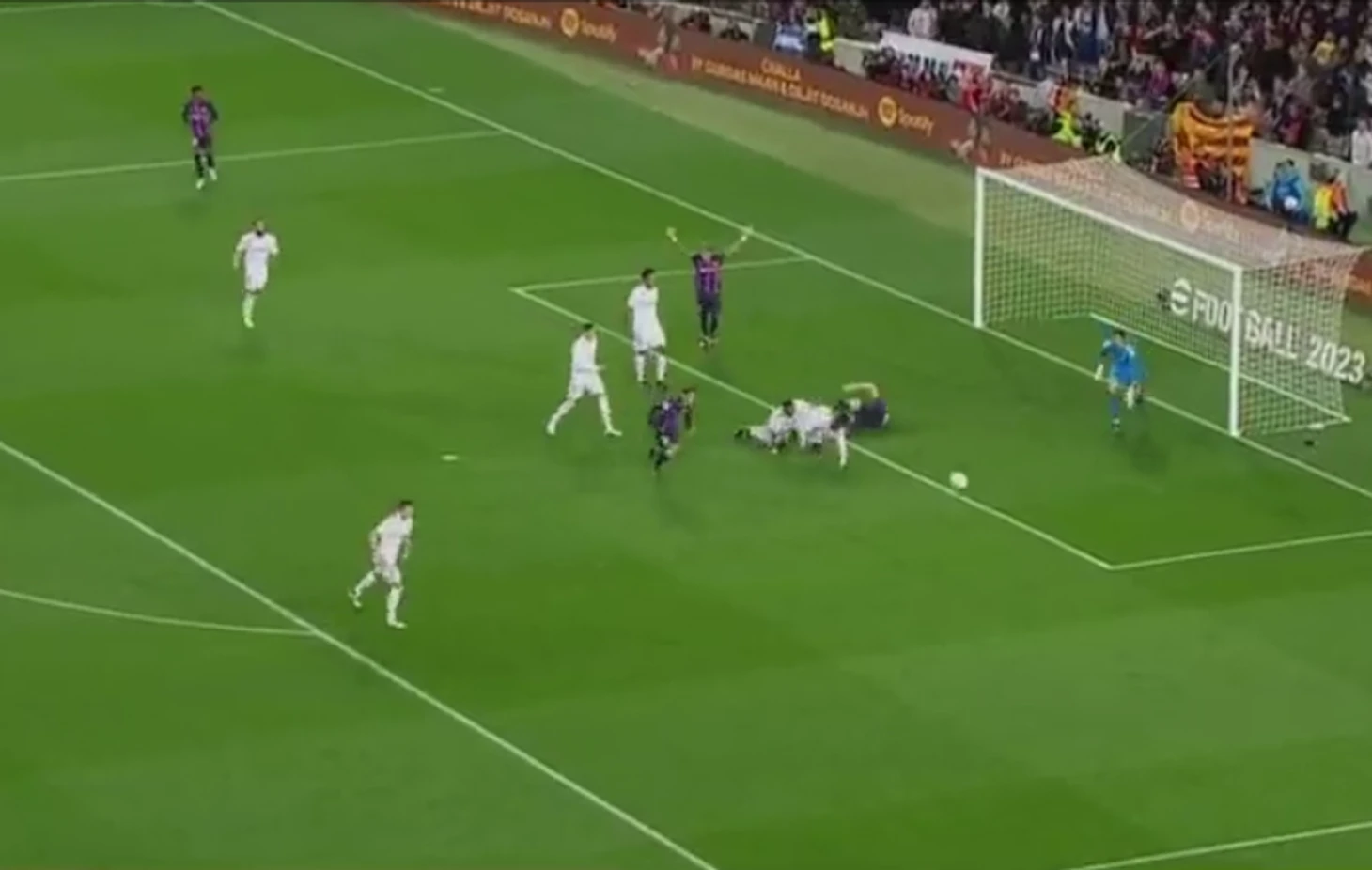 Маловероятно, что момент не просматривался VAR, но судья сделал вид, что ничего не было или попросту не видел произошедшее. Во время телевизионного эфира детальный повтор показан не был.