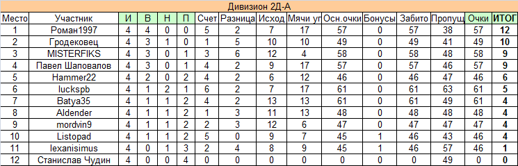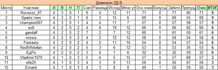 В Лиге 2Д-Б будет на что посмотреть и за чем следить: тут и семейный матч девушек missis-elle25, а также встреча одного из явных лидеров в лице champion’а с лидером скрытым, вроде бы затерянным в толпе пелетона. Судите сами, кто круче: тот, кто одержал 3 победы в 4-х матчах, или кто 2 в 2-х? Одним словом, система НБА вам в помощь, которая процентом побед выведет ЕГО на чистую воду. Маленькая подсказка – он пропустил первые 2 тура.