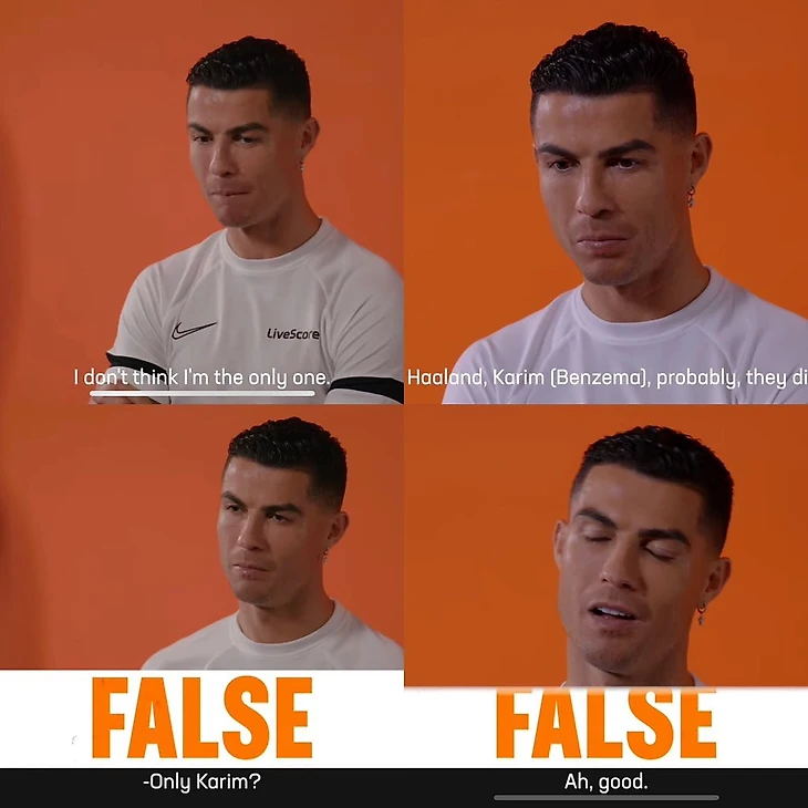 Криштиану Роналду снялся в рекламе одного из сайтов футбольной статистики. На видео Криштиану должен был угадать, является ли факт о нем правдивым или нет.