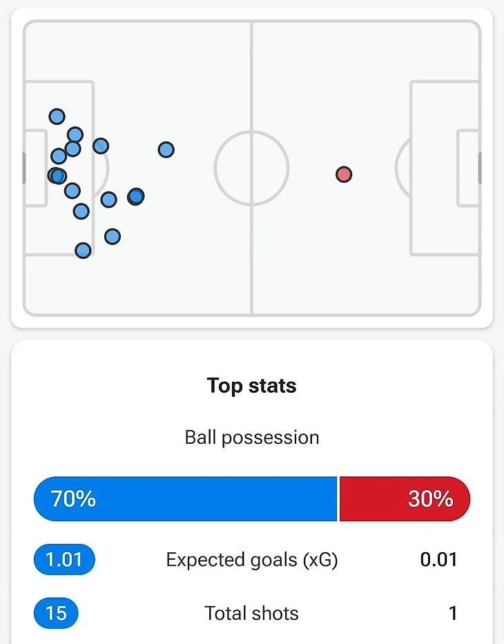 До перерыва хозяева уступали по игре и создавали меньше угрозы (xG: 0,41 – 0,73). Зато потом завелись и стали превосходить соперника (xG: 0,67 – 0,25).