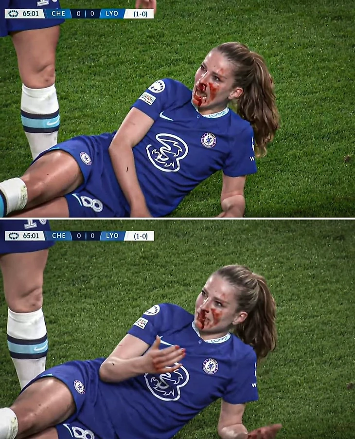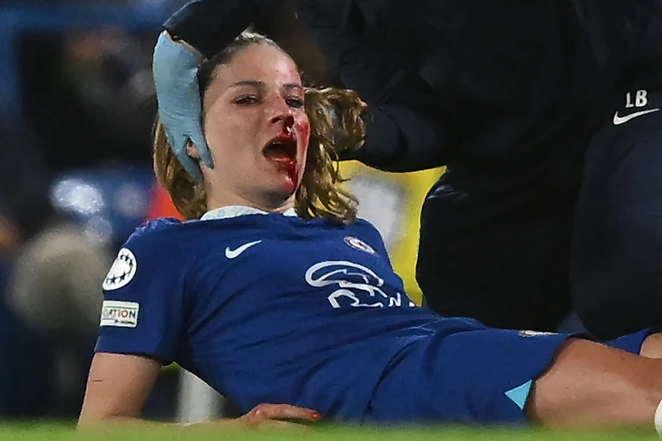 Женский футбол может быть суровее мужского: в Лиге чемпионов футболистке «Челси» разбили лицо прямо на поле😳😳😳