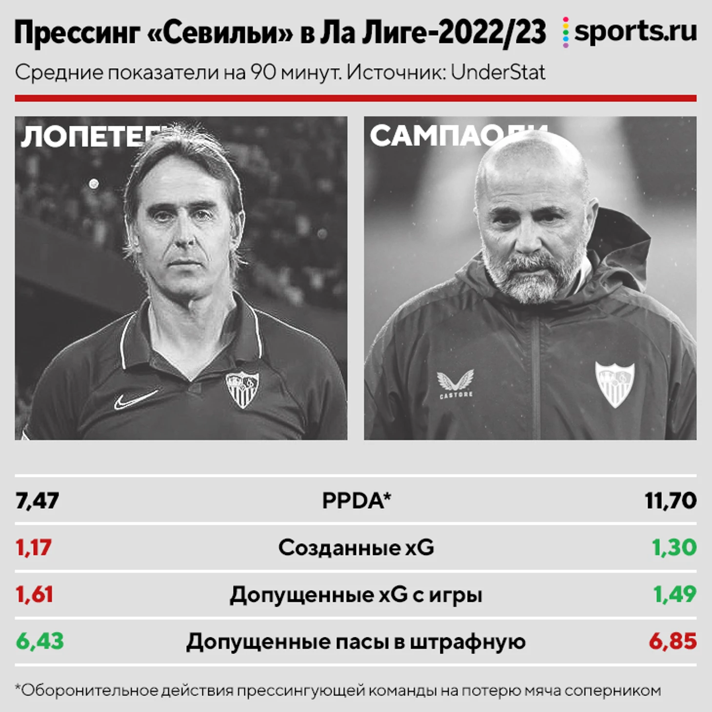 Поиск сочетаний в защите бьет и по остальным линиям: например, из-за необходимости выставлять туда опорников «Севилья» ограничивает количество опций в середине поля. Если Лопетеги мог позволить себе выпустить сразу двух опорников в старт, то Сампаоли пришлось переставлять в опорную Жоана Жордана или даже Ивана Ракитича.