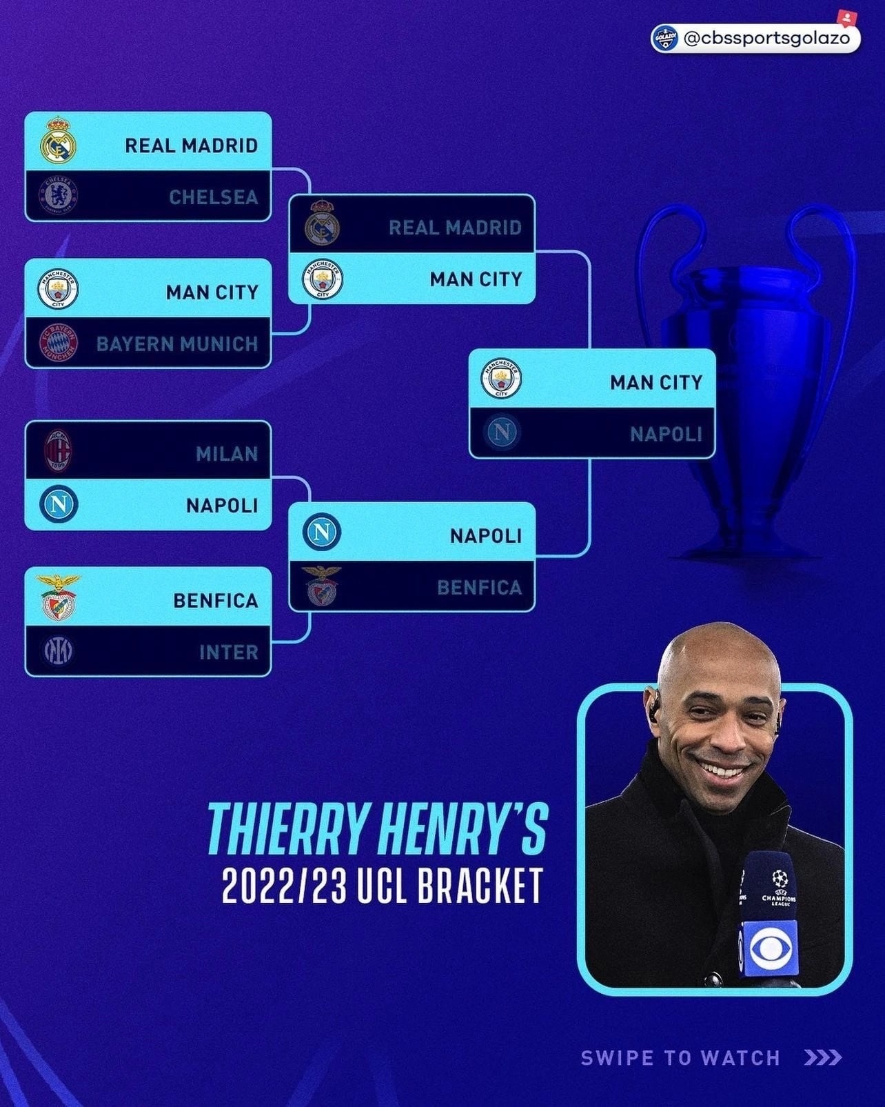 Тьерри Анри в эфире CBS Sports, назвал своего фаворита Лиги чемпионов-2022/23.