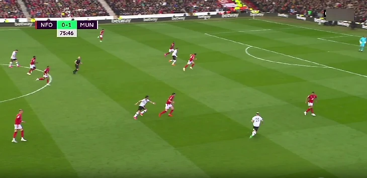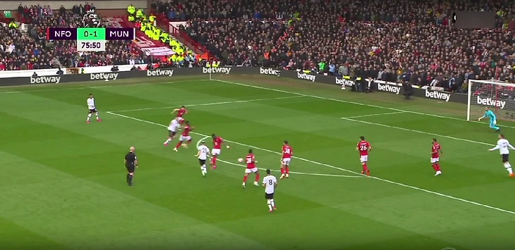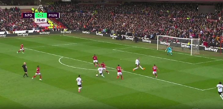 Антони оформил прекрасный ассист, выведя Далота один на один с вратарем. Бразилец получил мяч на правом фланге, протащил его до штрафной, вспоров оборону соперника, и отдал аккуратный пас в центр штрафной, куда ворвался защитник и пробил над рукой Наваса.