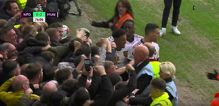 В своем сотом матче за «Юнайтед» Далот забил первый гол в Премьер-лиге. И отпраздновал это с фанатами ❤️🔥