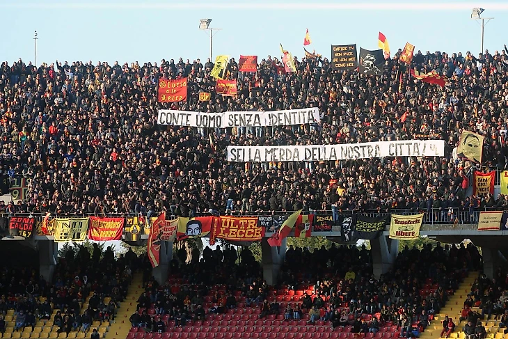 Во время приезда Ювентуса в золотой город Саленто на ответный поединок, город кипел яростью. Стадион Виа дель Маре превратился в котел гнева, и весь он был направлен в сторону Конте. На трибунах тут и там виднелись транспаранты оскорбительного содержания, а на последних минутах фан-сектор затянул свою любимую песню, адресованную всем местным фанатам Юве: «За всех, кто из Лечче, и предал свой город, помолимся Святому Оронцию, чтоб он вас сразил молнией»