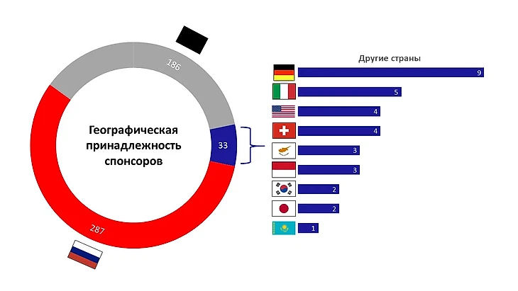 Отдельно хотелось бы остановиться на географической принадлежности спонсоров.