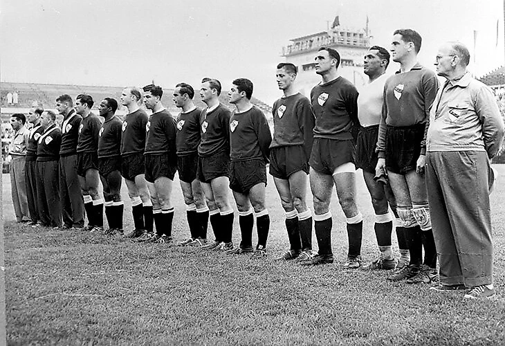 Мы с вами уже успели пробежаться по ключевым игрокам сборных, участвовавших в квалификации, отметили основных голеадоров и главных звезд, однако составы национальных команд, играющие в отборочном цикле и попадающие в финальные части международных турниров, нередко отличаются друг от друга (причем, иногда довольно сильно). Кроме того, в качестве подготовки к ЧМ-1954 команды сыграли немалое количество крайне интересных товарищеских матчей, о которых также нельзя не упомянуть, а про сборные Швейцарии и Уругвая мы вообще еще ничего не знаем. В общем, в качестве последнего шага перед рассказом о ходе лучшего международного турнира в истории футбола (ну, а как еще назвать первенство, поставившее с десяток рекордов и завершившееся одной из самых неожиданных побед ever!), пришло время попристальнее взглянуть на 16 счастливчиков, отправившихся на чемпионат мира образца 1954 года.
