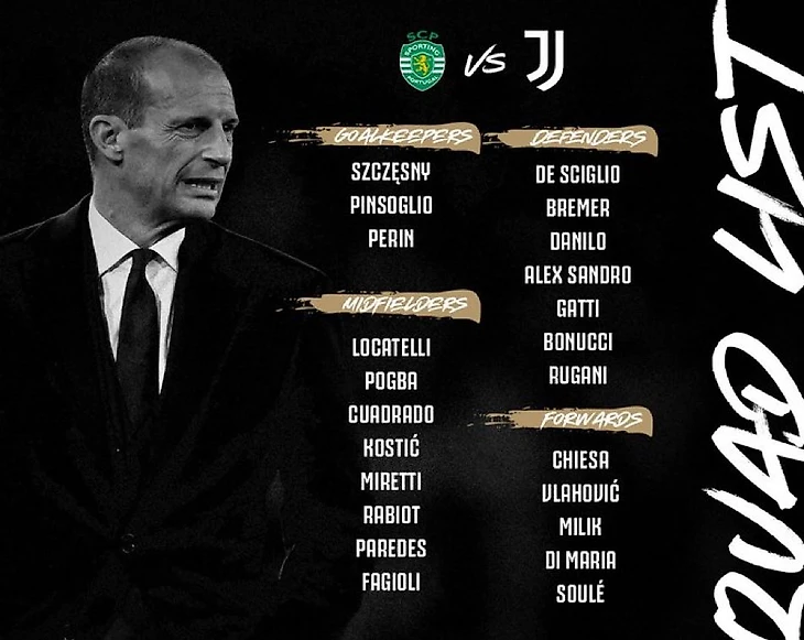 ⚪️⚫️ Заявка «Ювентуса» на матч против «Спортинга» 📜
