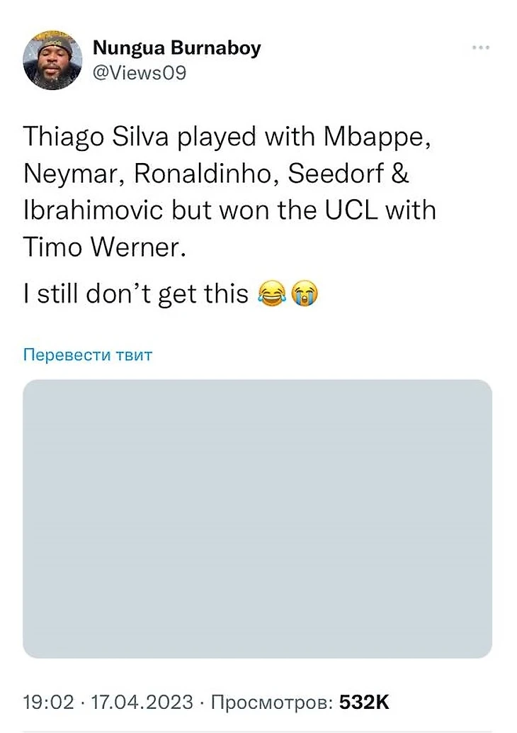 «Тиаго Силва играл с Мбаппе, Неймаром, Роналдиньо, Зеедорфом и Ибрагимовичем, но Лигу чемпионов выиграл с Тимо Вернером. Я не понимаю этого».