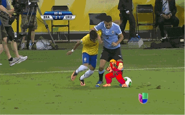 К примеру, в матче с Уругваем Неймар вступил в единоборство с ранее упомянутым Вальтером Гаргано. Уругваец прикрыл мяч корпусом, после чего случайно ударил ладонью в грудь бразильцу. Но нападающий отлетел от соперника на метр так, будто его ударил не Гаргано, а кто-то из братьев Кличко, а затем упал на газон, держась за лицо.