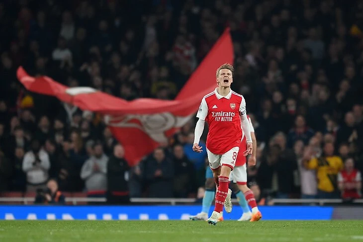 Когда за пару минут лондонцы превратили 1:3 в 3:3, вспыхнула надежда. Капитан Мартин Эдегор сам забил второй мяч и вот так заряжал.