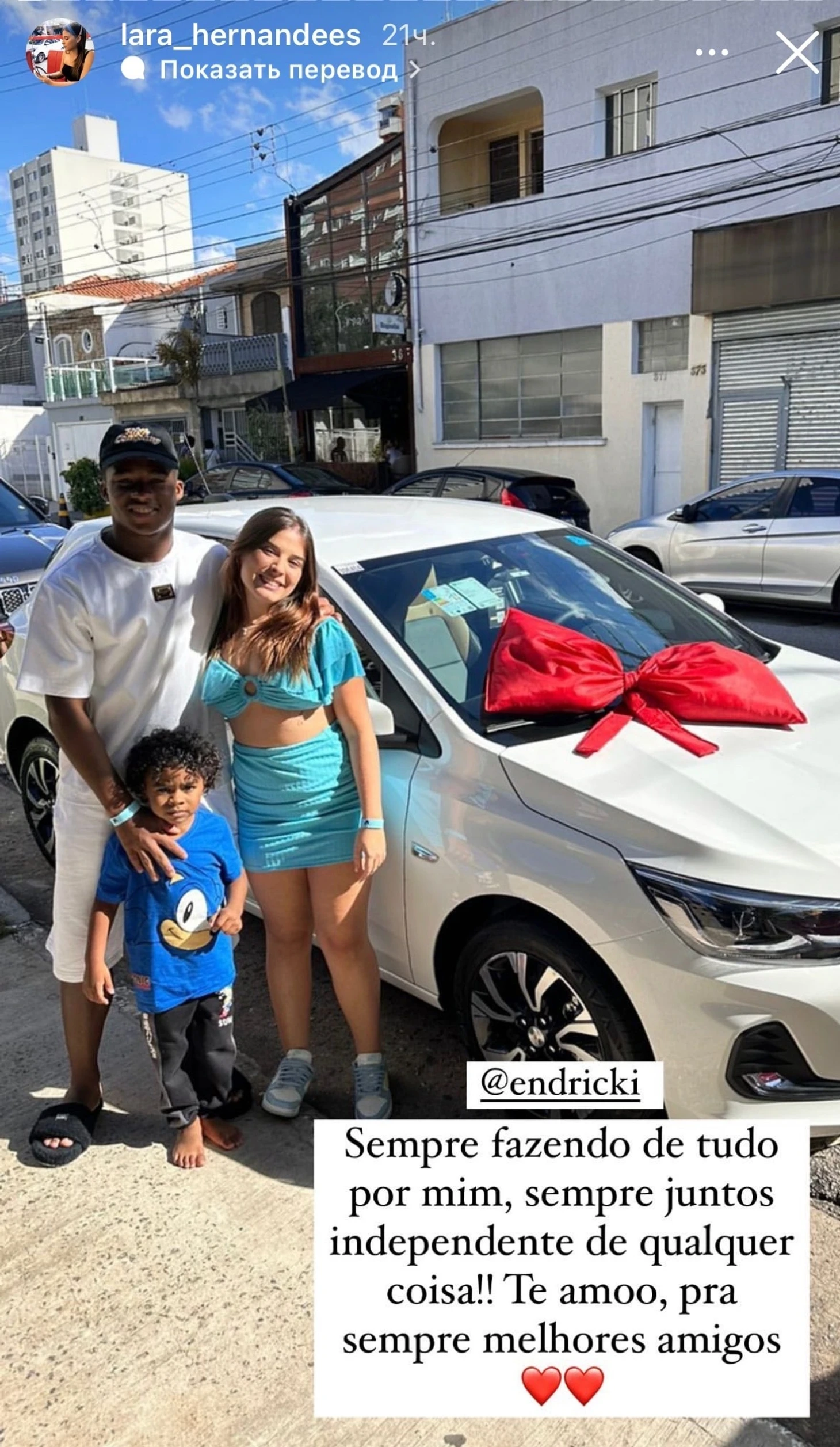 Недавно Эндрик подарил своей лучшей подруге Ларе машину на день рождения. Девушка поделилась в соцсетях фотографией с подписью: