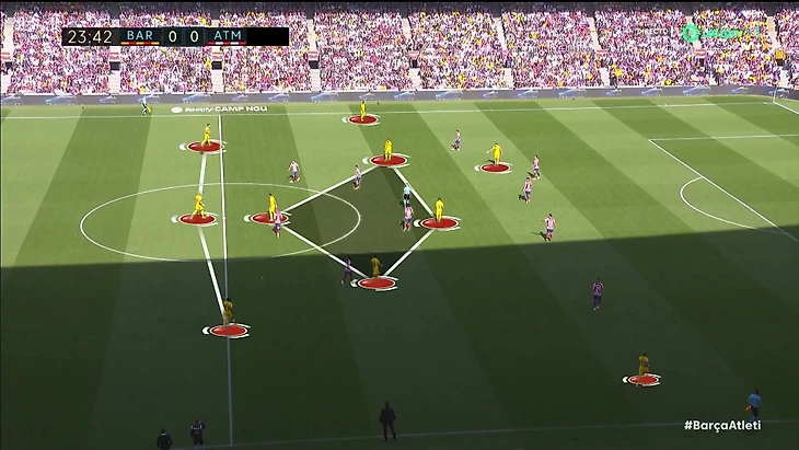 К такому варианту «Атлетико» был весьма неплохо готов. Некоторые проблемы возникали, когда «Барселона» нагружала фланги. Например, Ферран и Бальде открывались против одного Молины: