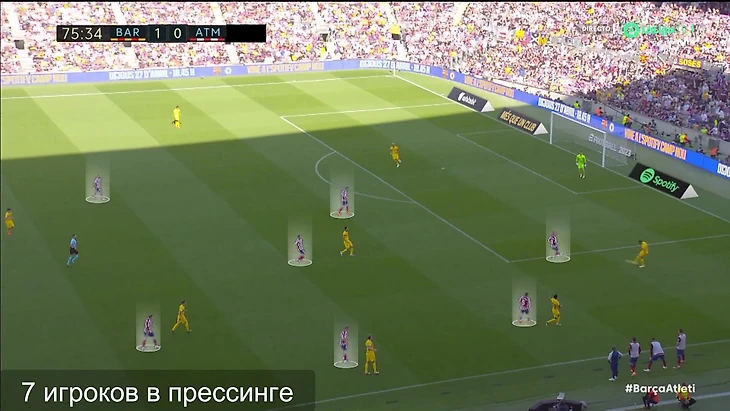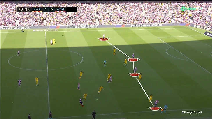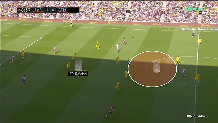 Но открытый рисунок матча работал в обе стороны. «Барса» получила возможность наказывать «Атлетико» на пространстве. В более смелом режиме «Атлетико» не гарантировал цельность оборонительной линии, которая располагалась намного выше, чем в первом тайме.