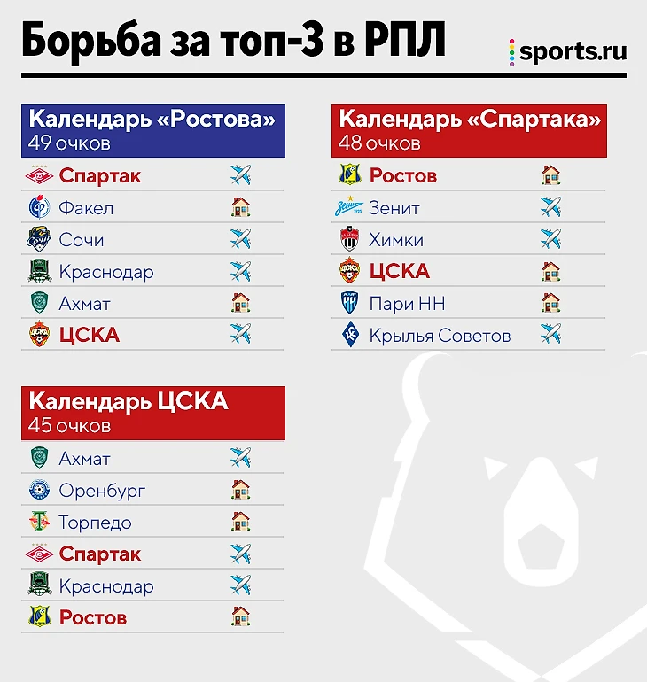 В гонке за медали «Ростов», «Спартак» и ЦСКА. Кто лишний?