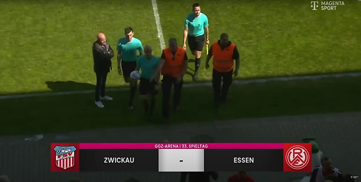 После перерыва игра не была возобновлена. Личность нападавшего установлена. Им оказался один из спонсоров «Цвиккау». Мужчина в настоящий момент находится под следствием за нанесение телесных повреждений.