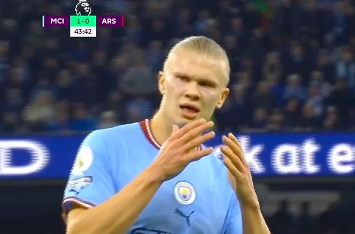 В важнейшем матче АПЛ «Манчестер Сити» разнес «Арсенал» (4:1), а Эрлинг Холанд 94 минуты провел без гола. Выстрелил только на 95-й. Хотя и до этого событий хватало – норвежец делал голевые пасы, часто промахивался и доигрывал матч в новом образе.