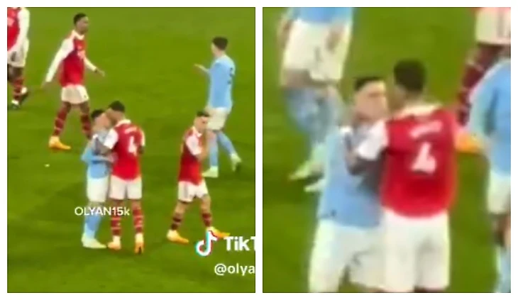 А по окончании матча свою силу с помощью кулаков решил показать защитник «канониров» и сборной Англии Бен Уайт – свой гнев он обратил к партнеру по сборной Филу Фодену, который тушеваться не стал.