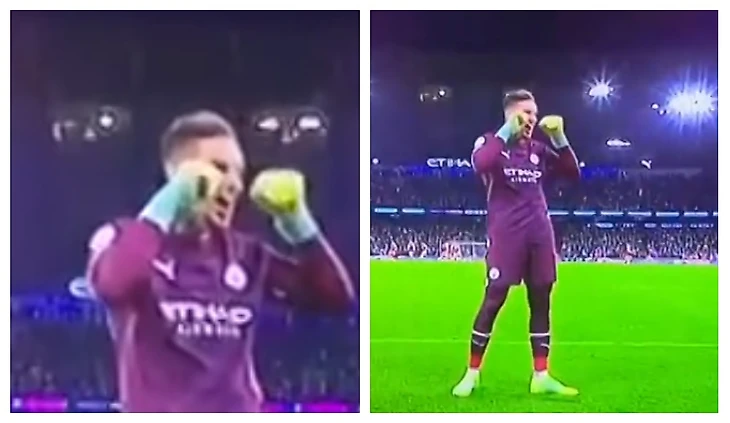 После этого гола вратарь «Сити» Эдерсон повернулся к фанатам «канонирам» и решил над ними поиздеваться.
