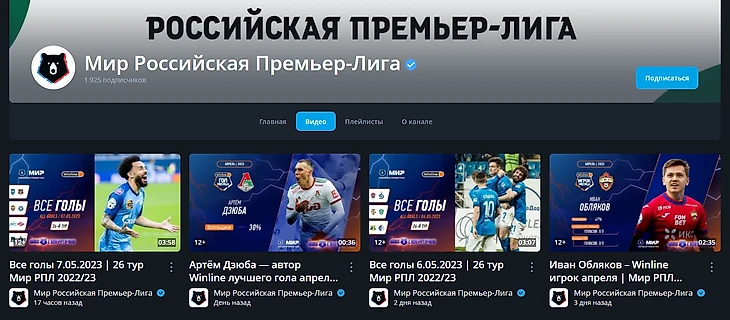 Канал лиги теперь появился на RUTUBE, на нем доступны только обзоры голов тура и информация о самых ярких игроках/моментах месяца.
