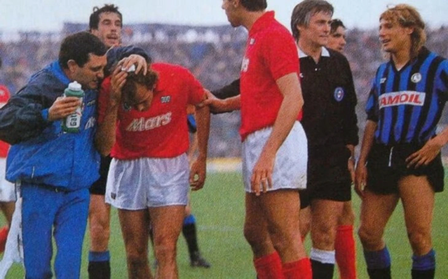 На 79-й минуте Алемао вдруг согнулся: монета в 100 лир (8 центов) прилетела ему прямо в голову. Матч приостановили. Бразилец стоял на ногах, но постоянно прикладывал руку к шевелюре. Рану по очереди посмотрела половина команды. В конце концов «Наполи» прислал помощь. Медика сыграл массажист Сальваторе Кармандо.