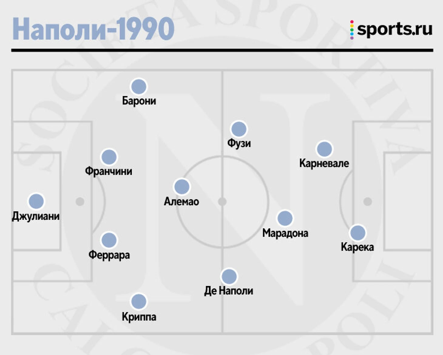 Вот в своё первое чемпионство (1987) у Наполи, действительно, был состав лучше подходящий в шаблон "Марадона и 10 деревьев". Но Де Наполи, Карневале и Феррара были в составе уже тогда (за сборную успел дебютировать только Де Наполи). А легионер был в том Наполи один - Марадона.