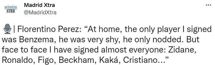«Единственным футболистом, которого я подписывал у себя дома, был Бензема, он был очень застенчив, только кивал. Но лицом к лицу я подписал почти всех: Зидана, Роналду, Фигу, Бекхэма, Кака, Криштиану…»