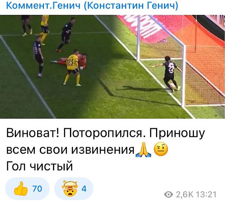 💭 Следом появился еще один пост – с критикой Константина Генича. «Ростову» не понравилось, что комментатор назвал столкновение Александра Соболева и Андрея Ланговича на 39-й минуте «игровым моментом»: «Ой-ой-ой, как Соболев-то врезался в лицо Ланговичу. Но игровой момент».