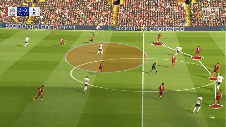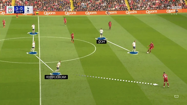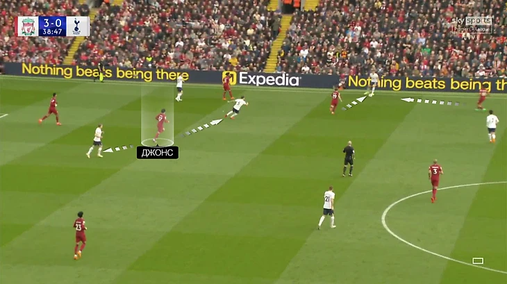 На этом отрезке «Тоттенхэм» не мог придумать, как нейтрализовать структуру соперника. Если опорники выдвигались на Трента с Фабиньо, «Ливерпуль» пользовался зоной между линиями:
