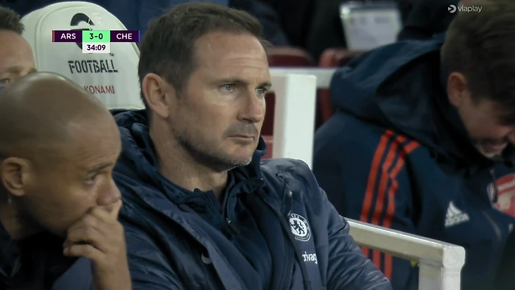 Через секунды после 0:3 в матче «Арсенала» и «Челси» операторы показали в трансляции Фрэнка Лэмпарда – ох