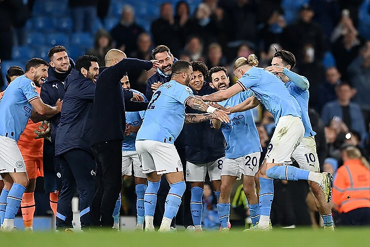 Ортега, Аке, Рубен Диаш, Уокер, Стоунз, Родри Эрнандес, Грилиш, Бернарду Силва, Альварес, Марез, Холанд