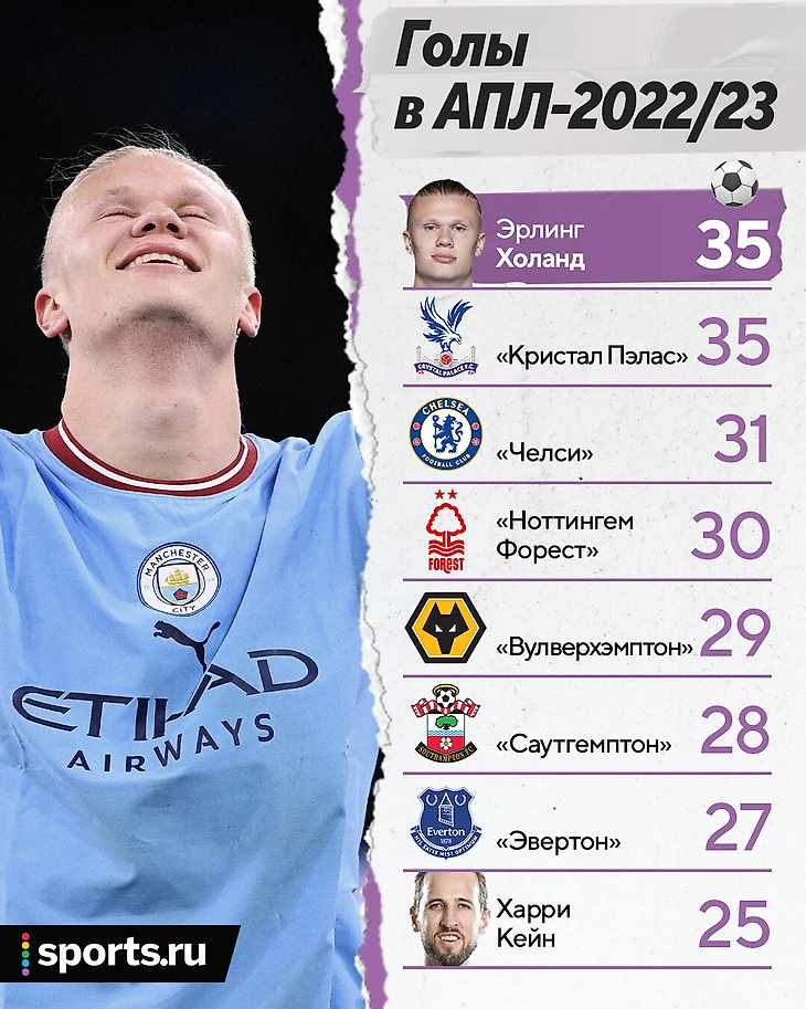 Против «Вест Хэма» фирменно улетел за спины защитникам и шикарно перекинул Лукаша Фабианьского – 2:0. «Сити» в итоге победил 3:0. Но главная цифра другая – 35. Теперь у Холанда 35 голов в АПЛ-2022/23.
