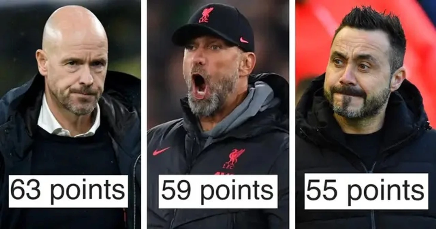 В настоящее время у подопечных Эрика тен Хага 63 очка, а это означает, что если «МЮ» заработает 11 очков из возможных 15, то останется вне досягаемости для «Брайтона» и «Ливерпуля».