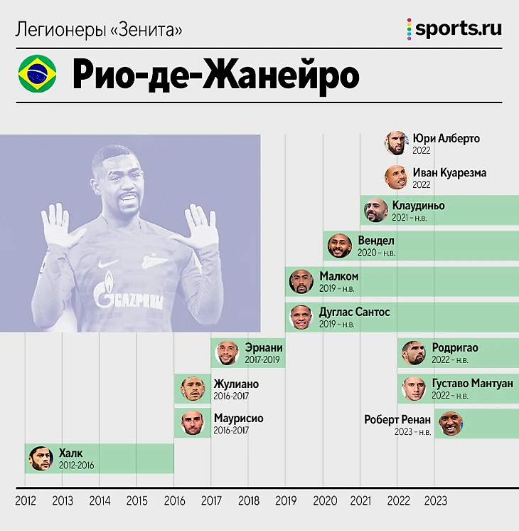 Всего через «Зенит» прошло 13 бразильцев – больше, чем легионеров любой другой национальности из дальнего зарубежья. Первый появился в «Зените» чуть больше десяти лет назад – это был Халк, которого взяли из «Порту» за рекордные 40 млн евро. 77 голов и 66 ассистов в 148 матчах окупили все затраты.