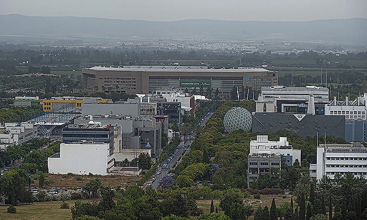 «Ла Картуха» к Экспо не относится, ее скорее построили под влиянием подобных масштабных идей. Но они близки и географически (вот этот шар в центре кадра – главный символ выставки), и по смыслу.