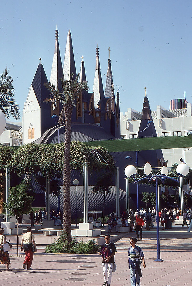 Мировую выставку тоже провели в 1992-м. Правда, сейчас многое из построенного тогда – для города мертвый груз. Сразу за тем самым небоскребом, если идти по набережной, зона Экспо: многие павильоны заброшены целиком, некоторые используют лишь частично.