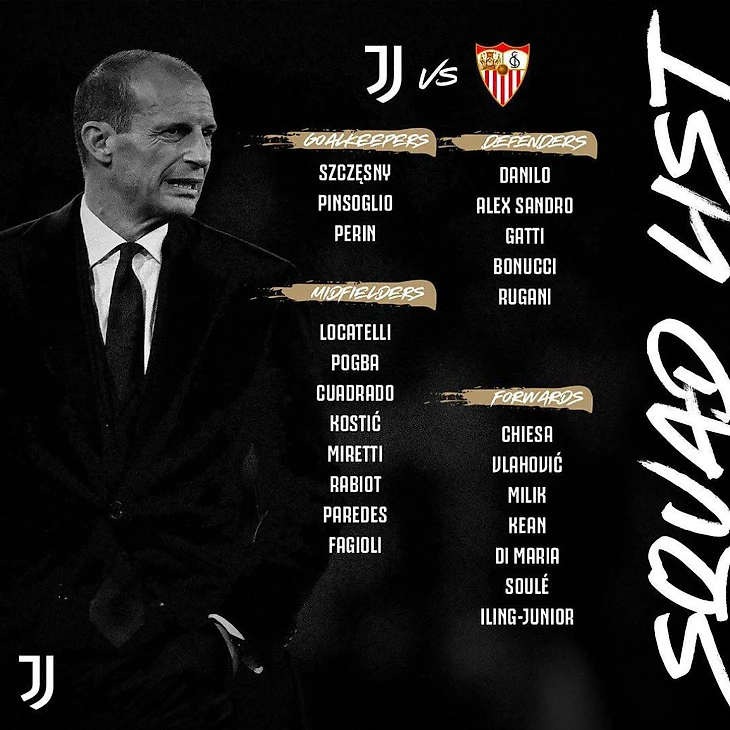⚪️⚫️ Заявка «Ювентуса» на матч против «Севильи» 📜