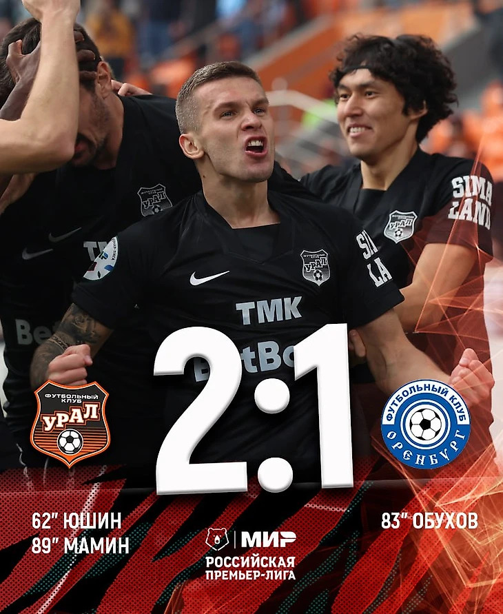«Урал» не отпуститил руки и уже через 6 минут , на 89-ой минуте додавливает оренбуржцев. После удара Артёма Мамина , Кирилл Капленко скашивает удар в свои ворота. Автогол