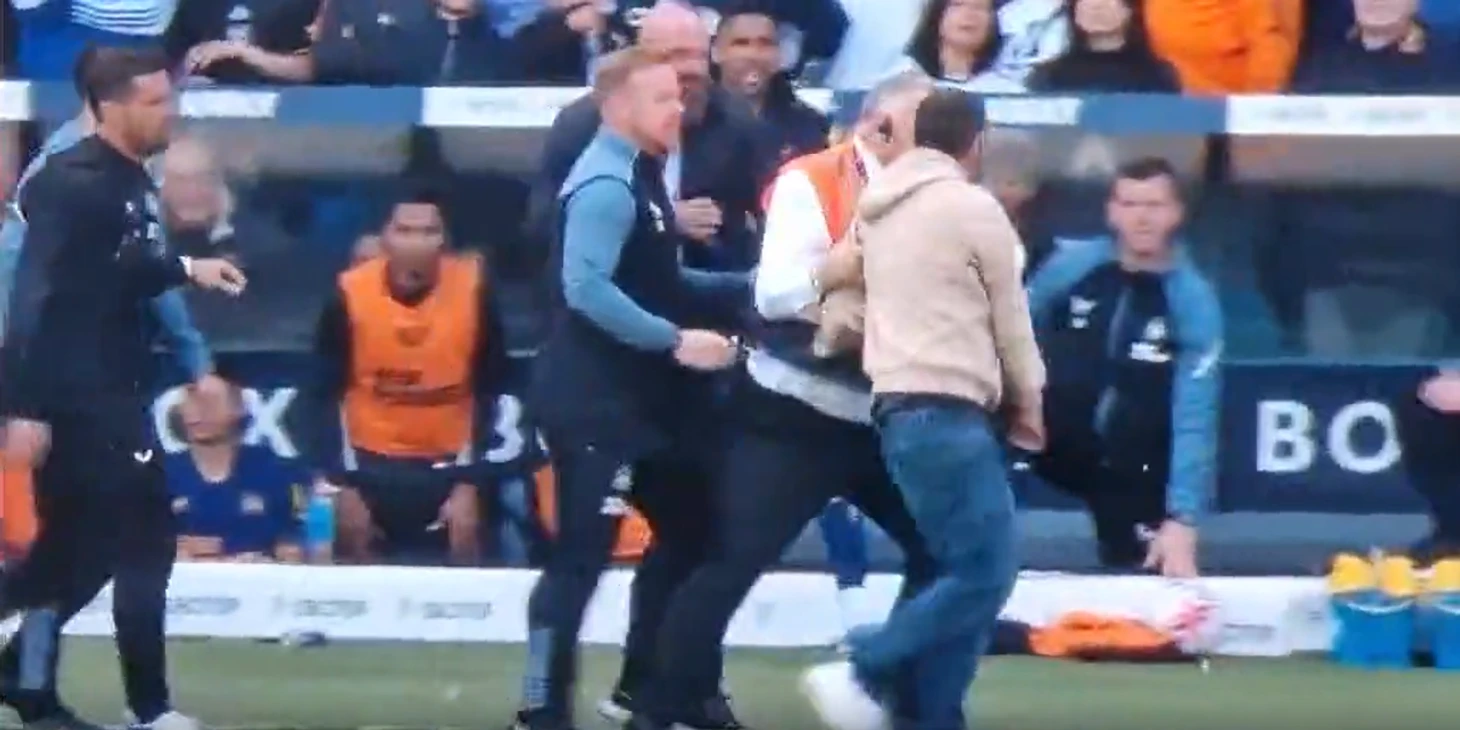 Во время матча «Ньюкасла» и «Лидса» произошел странный эпизод: болельщик добрался до тренера и толкнул его