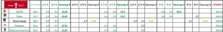 Были одержаны две победы над «Торпедо» (всего в сезоне четыре), две над «Сочи», победа над ЦСКА (хоть и по пенальти), в двухраундовом поединке был сломлен «Ростов», а затем и «Спартак».