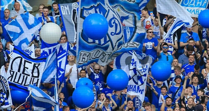 1 . Из "Динамо" все мы как один ! А "Динамо" - это мощь и сила ! Эта сила нас объединила ! Мы команда не простая ! Звездная , стальная и золотая ! Взрываются трибуны , немеют сектора ! Нас ждет сегодня жаркий бой И яркая игра ! Реет стяг бело-голубой ! И к победам зовет ! Лучшие парни страны - это мы ! Клубу "Динамо" верны ! - Тоже мы ! Славы спортивной сыны ! Братство "Динамо" ! Союз "Динамо" ! "Динамо" , вперед !