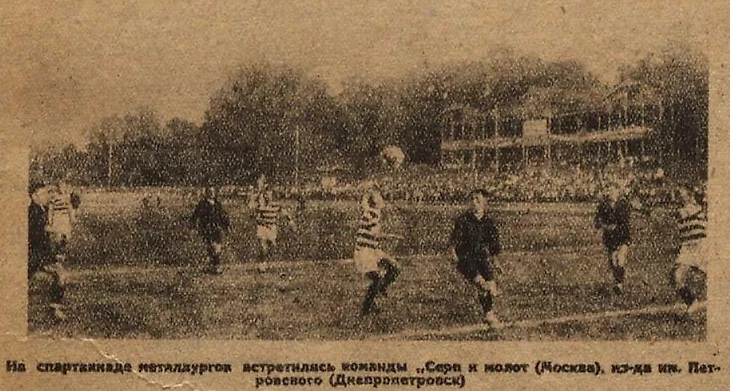 Август 1932 года. Днепропетровск. Футбольный турнир Спартакиады работников черной металлургии. Завод имени Г.И. Петровского (Днепропетровск) - «Серп и Молот» (Москва). Фото из журнала «Физкультура и спорт» № 22-24 за 1932 год