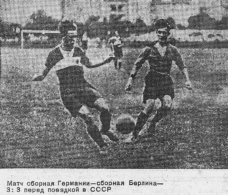 27 августа 1932 года. Берлин. Стадион «Лихтенберг-II» (ASV Lichtenberg-II, Bornitzstraße 22). Берлин (MSV-Auswahl) - Германия (KG-Ländermannschaft) - 3:3 (газета «Спартак» орган Ленинградского областного совета физкультуры № 15 от 18 октября 1932 года)