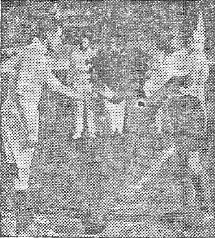 30 сентября 1932 года. Москва. Стадион «Динамо». СССР - Германия - 3:2. Приветствие капитанов команд - харьковского полузащитника Ивана Привалова и Рудольфа Хауша (?). Фото из газеты «Спартак» органа Ленинградского областного совета физкультуры № 13 от 6 октября 1932 года