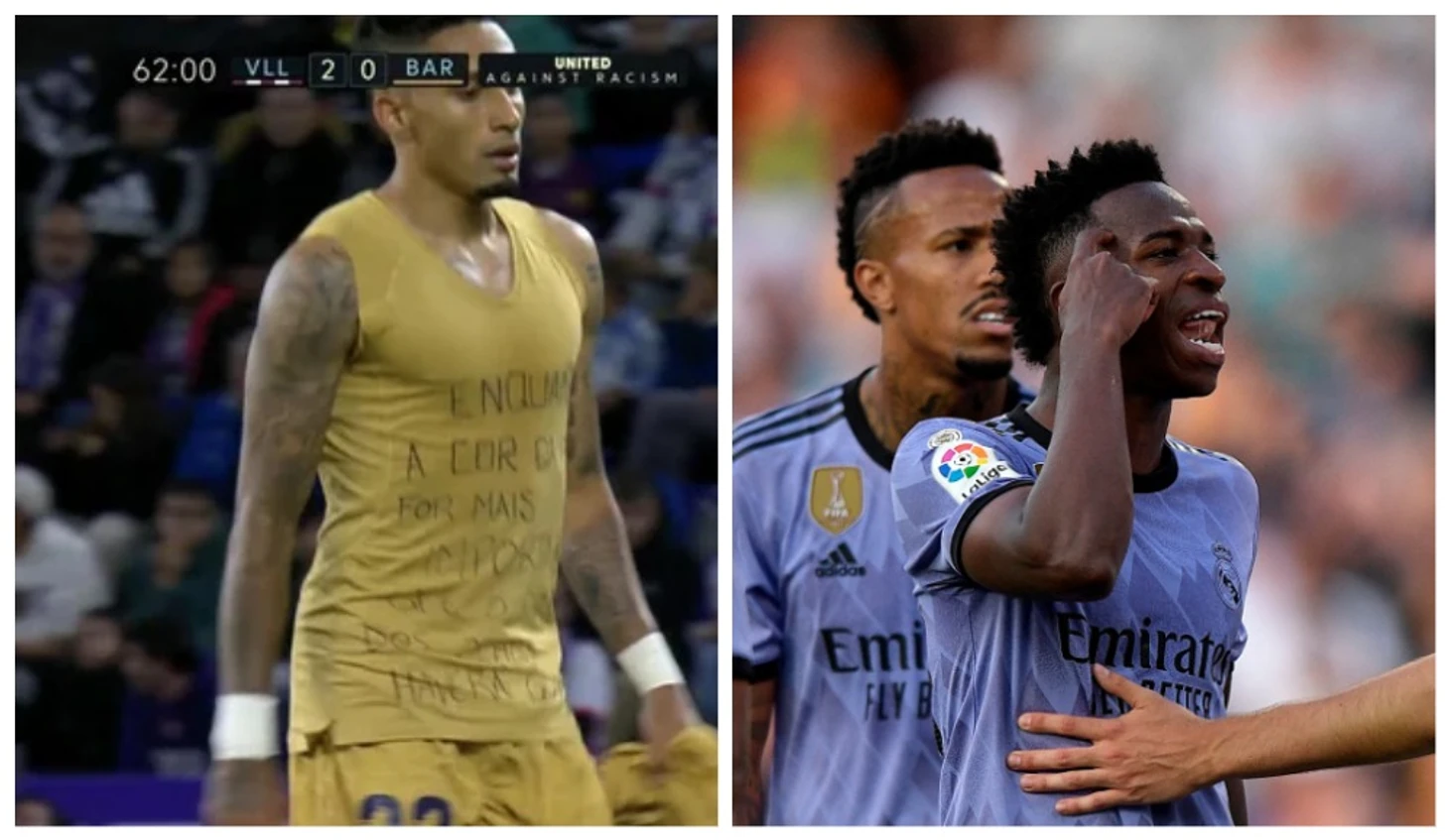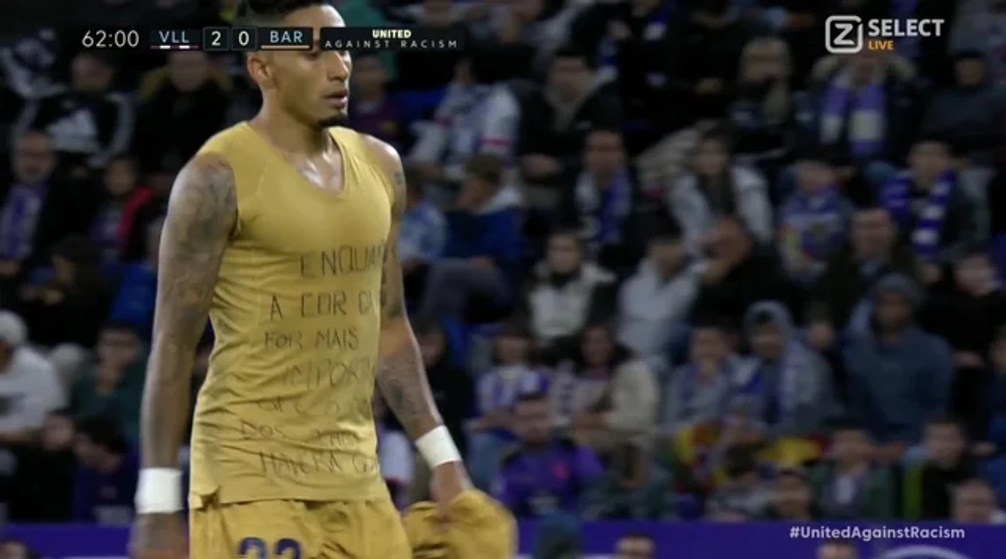 После замены Рафинья снял игровую майку и показал футболку с текстом. На ней были слова поддержки Винисиусу