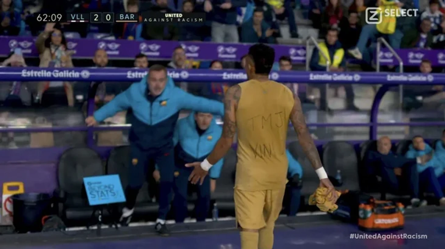 Когда вингер покидал пределы поля, он решил снять игровую футболку и продемонстрировать ту майку, которая у него была надета под низом. На ней оказались слова поддержки вингеру «Мадрида» Винисиусу Жуниору, который подвергся расистским оскорблениям в игре против «Валенсии».