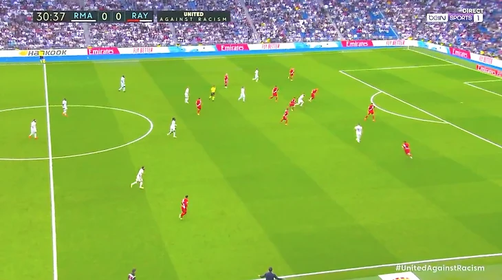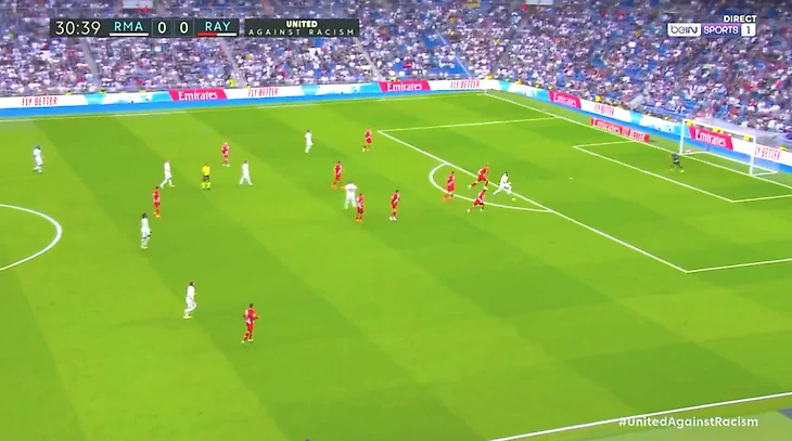 На 31-й минуте матча «Мадрида» и «Райо Вальекано» «сливочные» провели отличную атаку и открыли счет в игре.