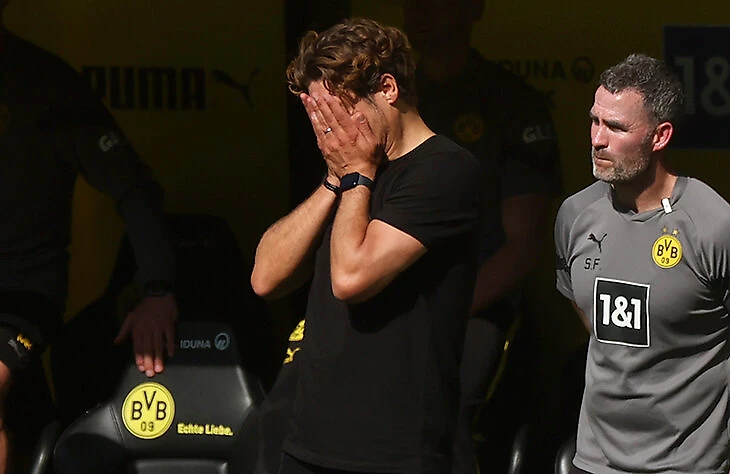 Главный тренер дортмундцев Эдин Терзич после того, как узнал результат в параллельном матче, застыл в таком виде.