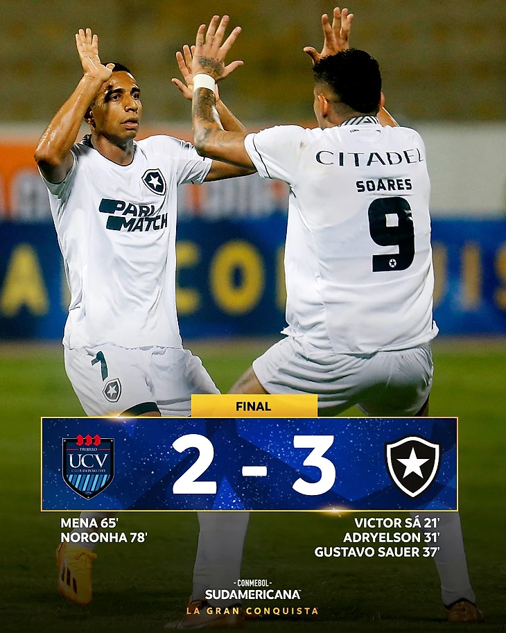 Однако, для Сесар Вальехо это был решающий матч, и во втором тайме они вышли с совершенно другим настроем. Они перехватили инициативу и пришли голы. Сначала лучший нападающий клуба Йорлейс Мена ударом головой замкнул навес с фланга. А потом Оснар Норонья пытался навесить, но мяч срезался и залетел за шиворот вратарю Ботафого.